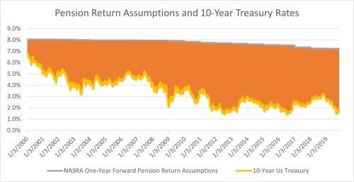 On average US pension plans currently have target returns assumptions of 7.25% on average, this is down from 8% in 2000.