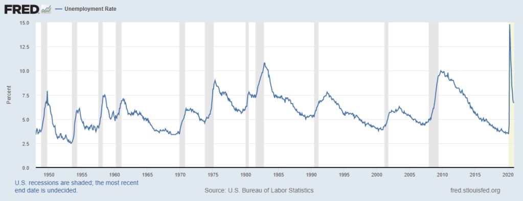 Although there might be some volatility in the inflation rate over 2021, reflecting the extreme disruption to the economy last year, core inflation is set to remain low given the level of spare capacity within the economy. By way of example, as presented in the graph below, US unemployment remains high despite a breathtaking recovery over the second half of 2020. The US unemployment rate is currently 6.7%. This compares to 14.8% at the end of April 2020 and 3.5% at the beginning of the year.